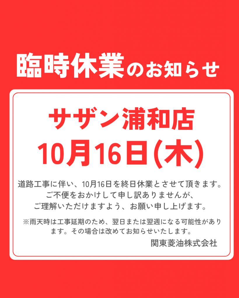 道路工事に伴い終日休業とさせていただきます。